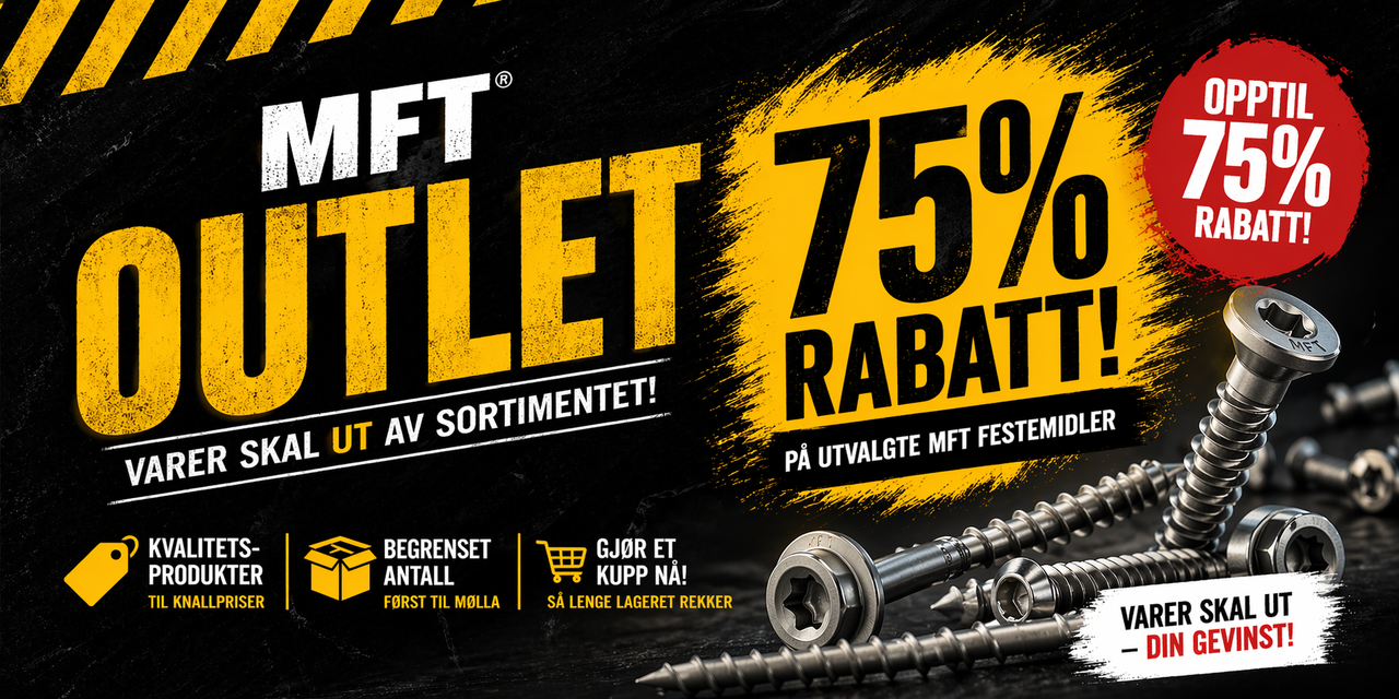 Outlet på MFT festemidler! en rekke varer skal ut av sortiment, og da kan du gjøre et særdeles godt kjøp!