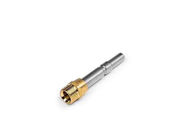 Adapter for tilkobling av spylerør/ tilbehør med skrukobling til det nye håndtakssystemet med hurtigkobling.