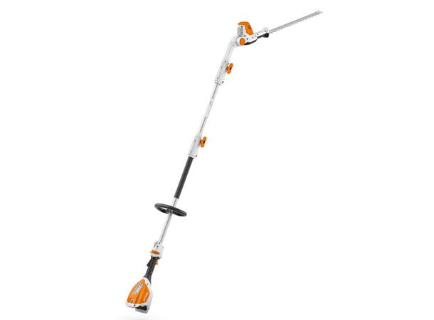 Batteridrevet hekksaks for høye og brede hekker. Konstant knivslag ved belastning, sammenleggbar, justerbar for topp-, side-og bakkeklipping, knivsverdet kan dreies 115°, lang rekkevidde, kniver slipt på begge sider, transportlengde 125 cm, totallengde 205 cm. Leveres uten batteri og lader.