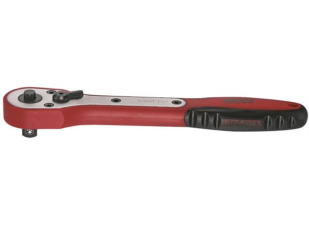 Fiberforsterket skralle med fast tapp. Lette og sterke. Skrallehode med 45 tenner gir en omtaksvinkel på 8 grader. Omstillbare med spak for høyre- eller venstregange. Knapp for låsing, samt rask løsning og skifting av piper.